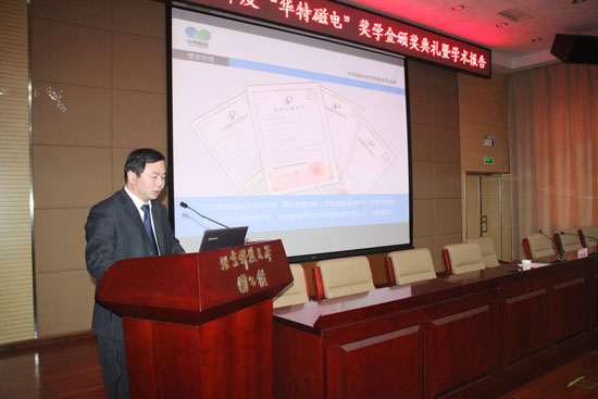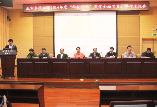 初冬時節,北京科技大學圖書館四樓報告廳暖意融融,2014年度“華特磁電”獎學金頒獎典禮暨學術報告會于12月8日下午在此隆重舉行。公司董事長兼總裁王兆連、公司常務副總劉風亮、北京科技大學土木與環境工程學院常委書記金龍哲、礦物加工工程系書記孫體昌等公司和學院領導師生100余人出席活動。