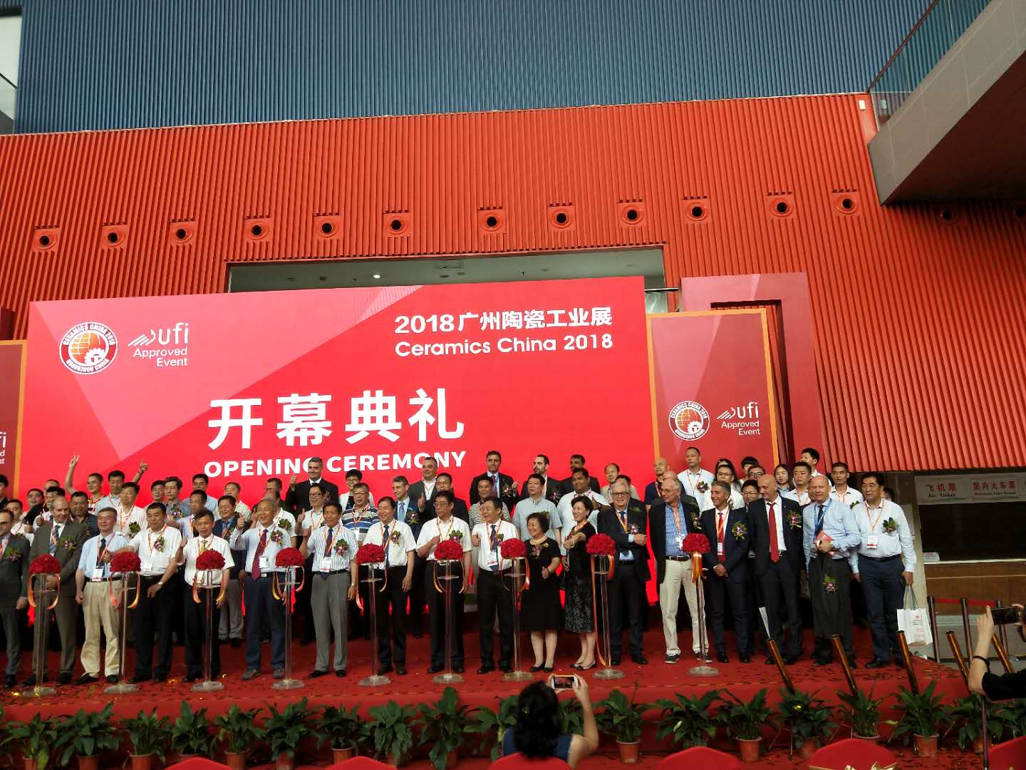 5月30日上午9:30,2018廣州陶瓷工業展在萬眾矚目下盛大啟幕,作為幾十年來陶瓷工業行業的大事件,展會得到政府、協會、專家以及業內品牌企業等各方的大力支持,出席開幕式的重量級嘉賓不可勝數,公司董事長兼總裁王兆連作為行業優秀企業代表出席開幕式。