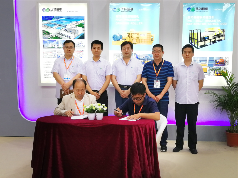 此次展出的產品,是華特公司緊密結合客戶需求,以市場為導向,產品質量可靠,性能優越,在市場上非常受歡迎,展會期間,華特展臺人流涌動,開展現場,工作人員對前來咨詢和洽談業務的客戶作了細致講解,客戶對華特產品贊不絕口,對華特優勢產品紛紛表示認同,開展當日,旗開得勝,其中來自佛山客戶訂購立環高梯度磁選機2臺+粉體成套生產線設備,湖南客戶訂購濕式強磁板式磁選機1臺、四川客戶訂購單傳動高壓輥磨機1臺……會展現場,捷報連連,此次展會共達成合同額近千萬元。
