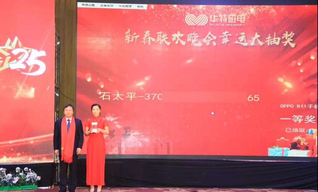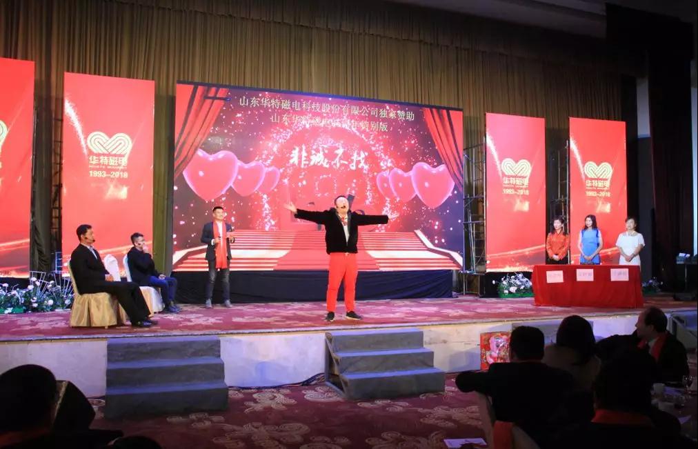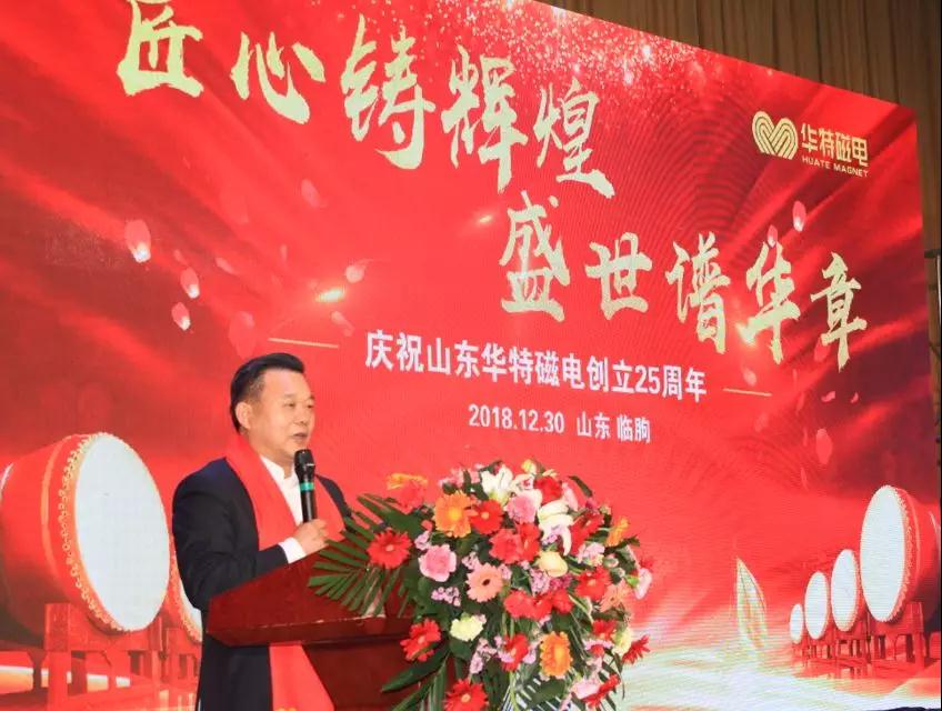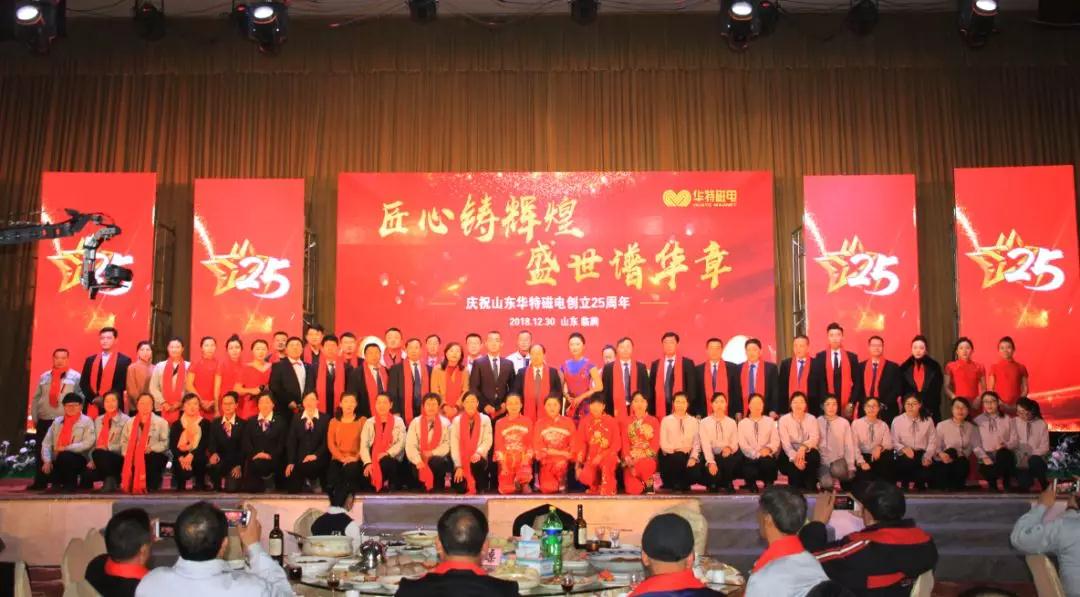 12月30日上午,山東華特磁電科技股份有限公司迎來(lái)了建企二十五周年慶典,臨朐經(jīng)濟(jì)開(kāi)發(fā)區(qū)管委會(huì)主任、城關(guān)街道黨工委書(shū)記白文玉,經(jīng)濟(jì)開(kāi)發(fā)區(qū)管委會(huì)副主任、街道黨工委委員尹德忠,華特公司董事長(zhǎng)兼總裁王兆連、常務(wù)副總裁劉風(fēng)亮、高級(jí)副總裁劉梅等領(lǐng)導(dǎo)與全體員工相聚臨朐攬翠湖溫泉度假村,一起回顧二十五年風(fēng)雨征程,共同感受二十五載創(chuàng)業(yè)輝煌。