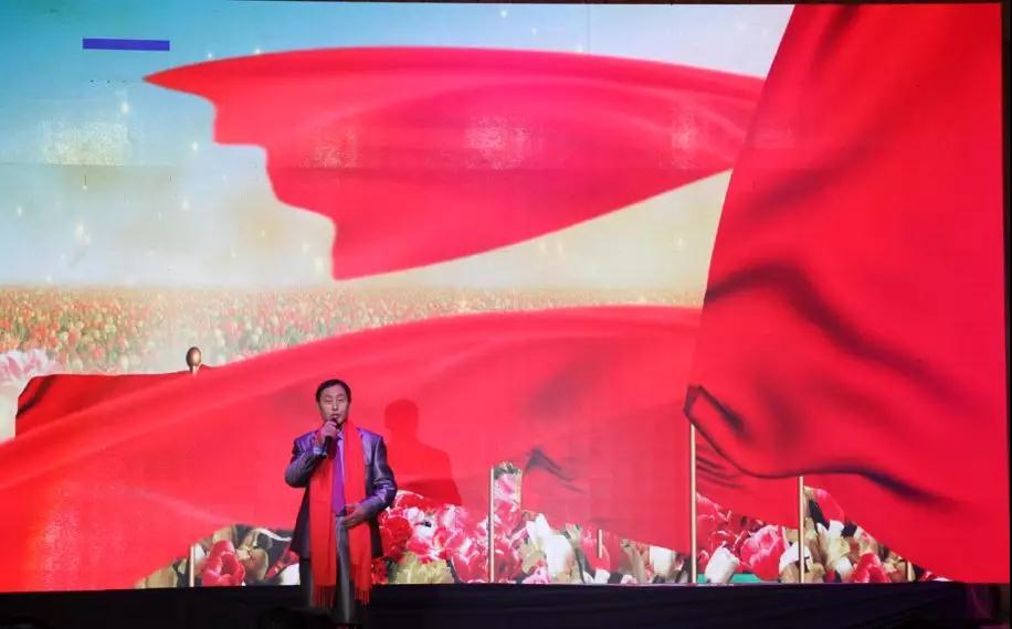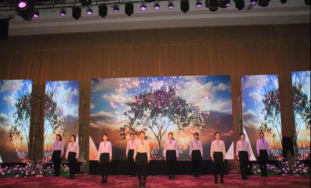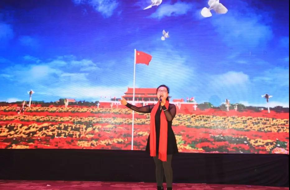 營(yíng)銷(xiāo)中心史秀梅、孫靜、張海貞、劉杰等員工帶來(lái)的合唱《五星紅旗》