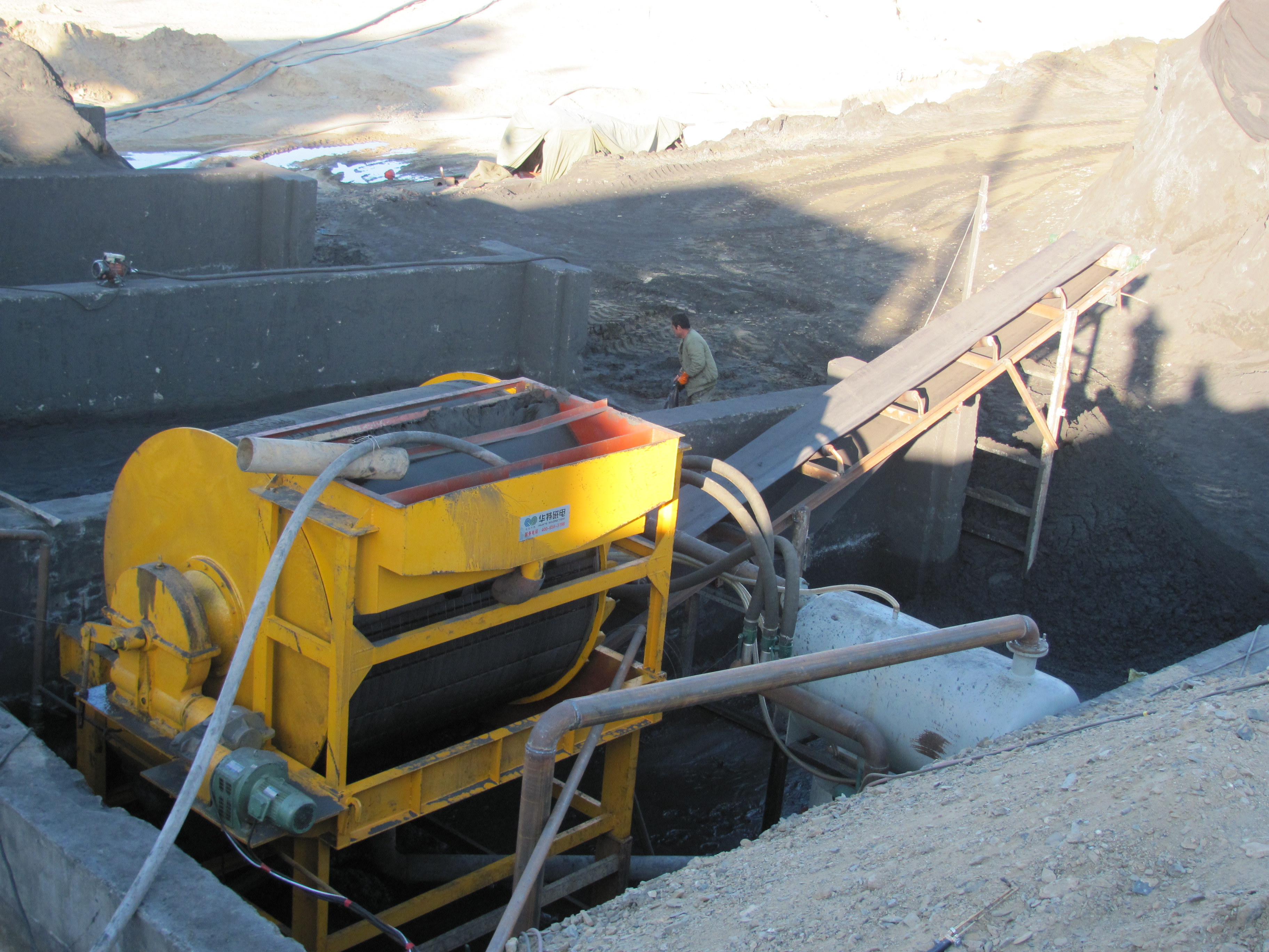 ◆本機(jī)依靠圓筒內(nèi)部磁系作用形成濾餅,磁性物料在磁力和顆粒本身重力作用下呈磁簇狀吸附在濾布上,吸附速度快,效率高。